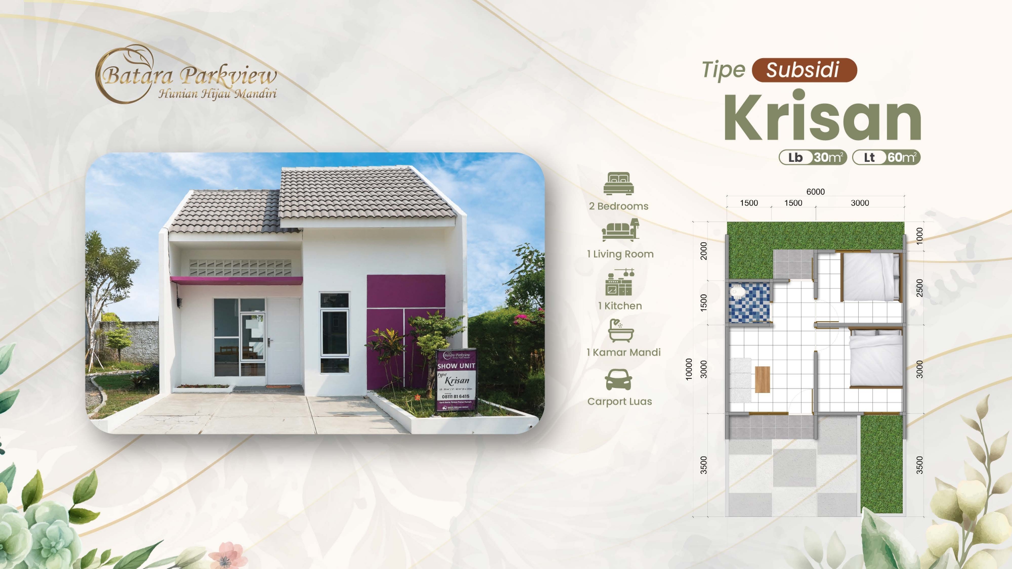 - Luas Tanah : 60m2