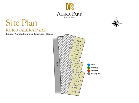 Ruko Alera Park tersusun rapi dalam satu kawasan komersial yang tertata, menciptakan lingkungan usaha yang nyaman dan profesional. Status unit yang terdiri dari booking, akad, reserved, hingga waiting list menunjukkan tingginya minat terhadap ruko di kawasan ini.